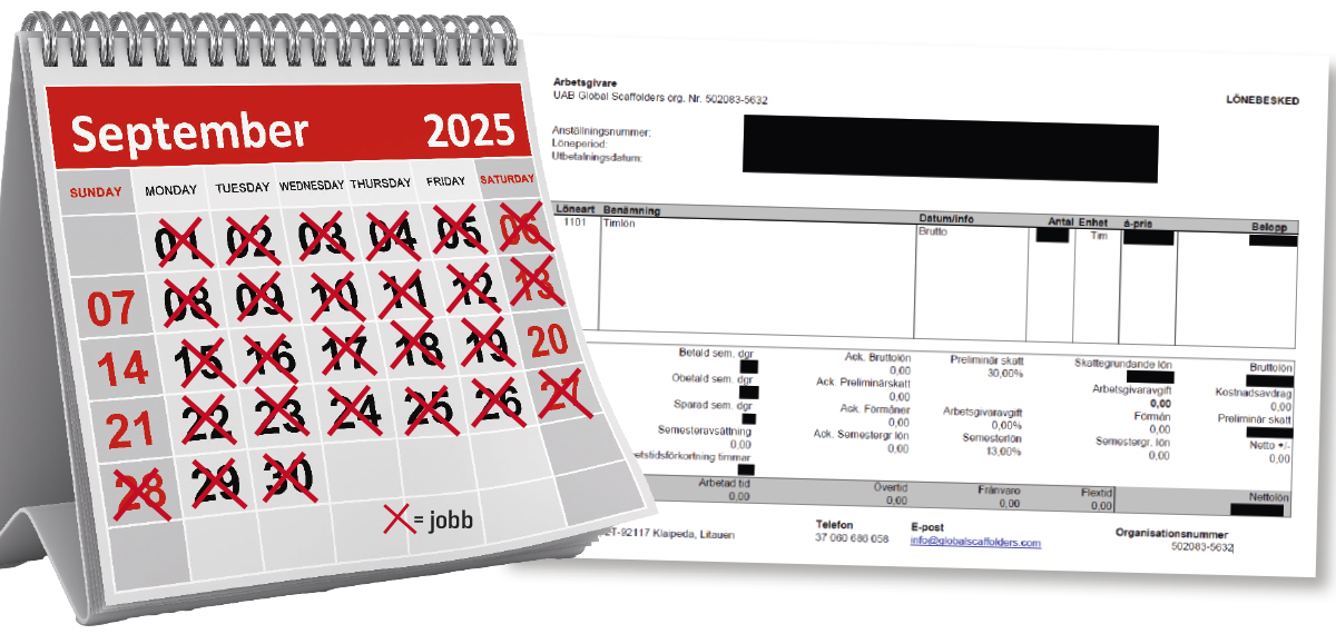 Han är en av hundratals litauiska arbetare som de senaste åren jobbat för ställningsjätten Global Scaffolders UAB i Sverige. Deras ställningsbyggare har varit inhyrda på alltifrån mindre husrenoveringar till jätteprojekt som Västlänken och Förbifart Stockholm och i stora industrier. Stegra, Oskarshamns kärnkraftverk, SSAB i Oxelösund och Mondi Dynäs i Kramfors är bara några.