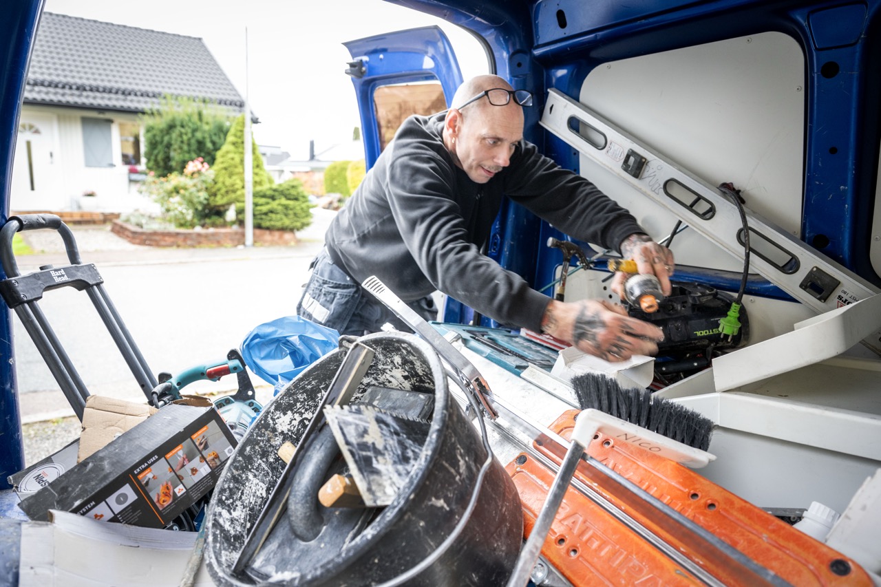 För det löste sig faktiskt för Mikael, hans arbetssituation blev efter en tid mycket bättre. Först fick han möjlighet att skola om sig till plattsättare – och sedan kom han via tips i kontakt med Galaxen, den branschgemensamma organisationen inom byggsektorn som bland annat hjälper personer som skadats eller blivit sjukskrivna att rehabiliteras och komma tillbaka till arbetslivet. Via Galaxen fick han nya verktyg som inte vibrerade.