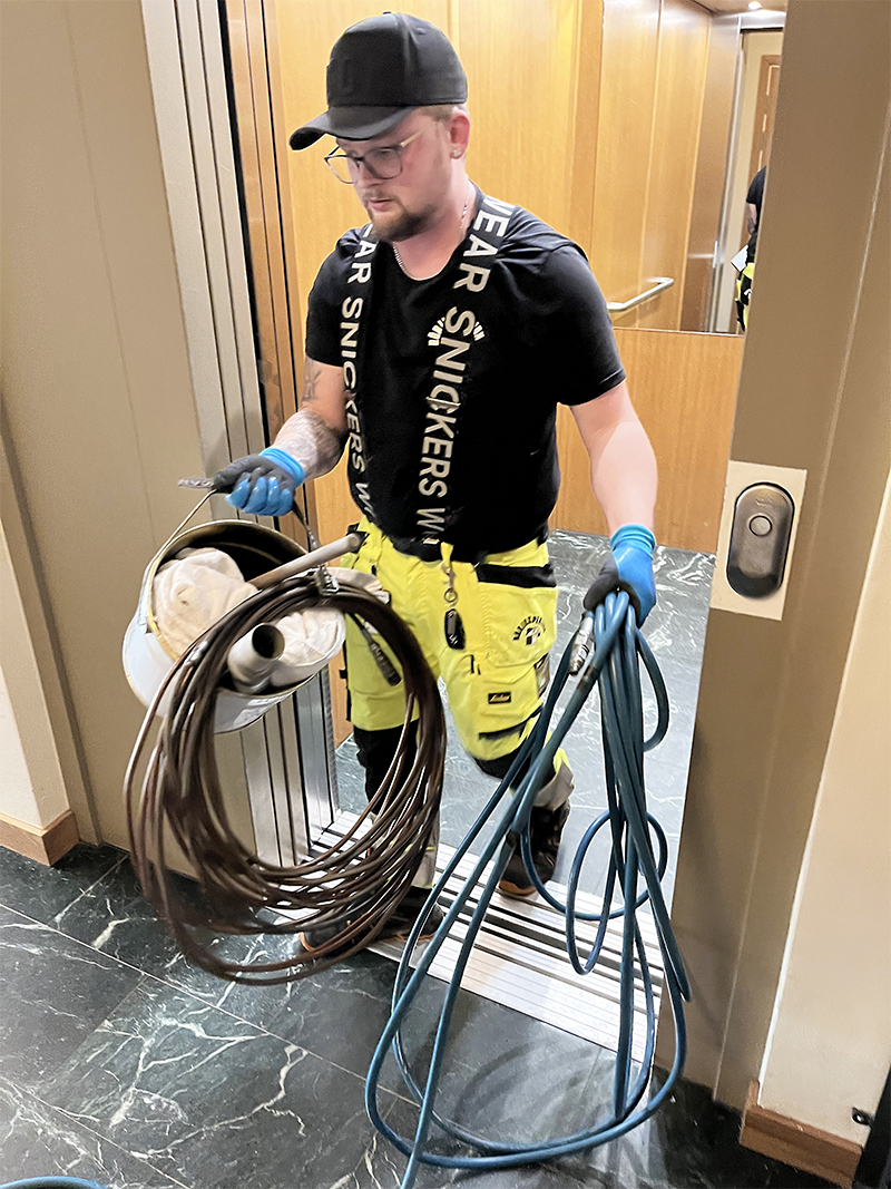 Jobben hopar sig och de kör vidare med var sin bil. En familj i Kvillebäcken på Hisingen har totalstopp i köket. Carl Johan drar vattenslangen från bilen fyra våningar upp till lägenheten över det eleganta marmorgolvet. Fett och matrester är den vanligaste orsaken till stoppen. Troligen så även här. Efter en kvarts arbete under vasken med varmt högtrycksvatten börjar det lukta väldigt illa.