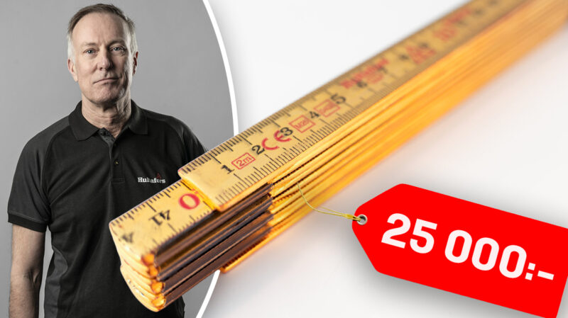 Så vad ska hända med tumstockarna som värderas till runt 25 000 kronor styck? En av dem ska hitta ny ägare via en tävling under Nordbyggsmässan i april.