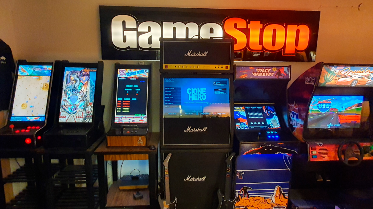 En källarlokal har fyllts av egenbyggda arkadspel – allt från gamla klassiker till rockspel som spelar ”högt som satan”.