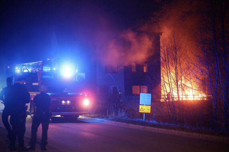 – Vi ser ingen naturlig förklaring till att det börjat brinna. Vi misstänker brott. Med tanke på att det finns en byggnad på samma tomt och flera andra byggnader nära så fanns det en spridningsrisk. Därför rubriceras det som grov mordbrand, säger Daniel Wikdahl, presstalesperson vid polisen i region Stockholm.