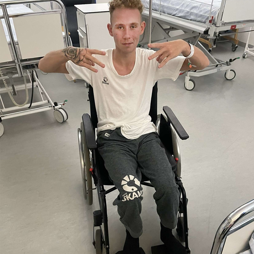 – Efter den första magnetröntgen sa de först ”vi ser inga skador”, så vi fick upp hoppet lite. Men efter en timme kom de tillbaka och sa att jag hade sex ryggfrakturer. Så det gick från typ ingenting till det värsta.