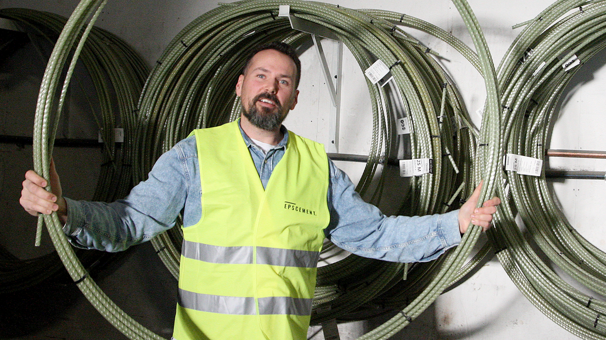 – Vårt största problem är att byggbranschen och byggmarknaden är så trög. Folk är restriktiva till att prova nytt, man vill göra som man alltid har gjort. Våra armeringsnät och stänger är egentligen inget nytt – det är bara efterfrågan som tidigare varit obefintlig, säger Joel Alex, vd på EPS Cement, som tagit fram Tensobar kompositarmering.