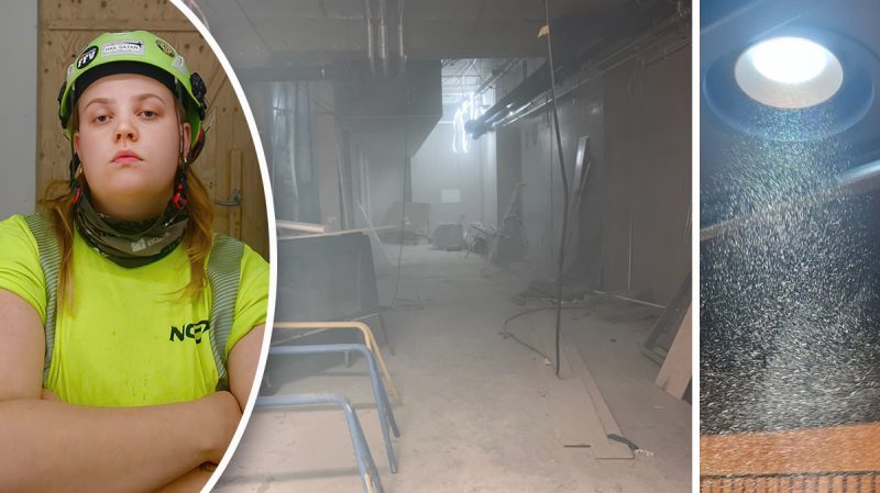 - Men värst av allt: dammet. Det ska bara finnas ett fåtal dammfällor på den 44 000 kvadratmeter stora byggarbetsplatsen. Maskiner används utan dammsugare och städningen sägs vara mycket bristfällig.