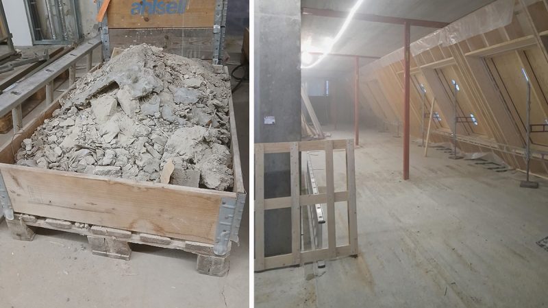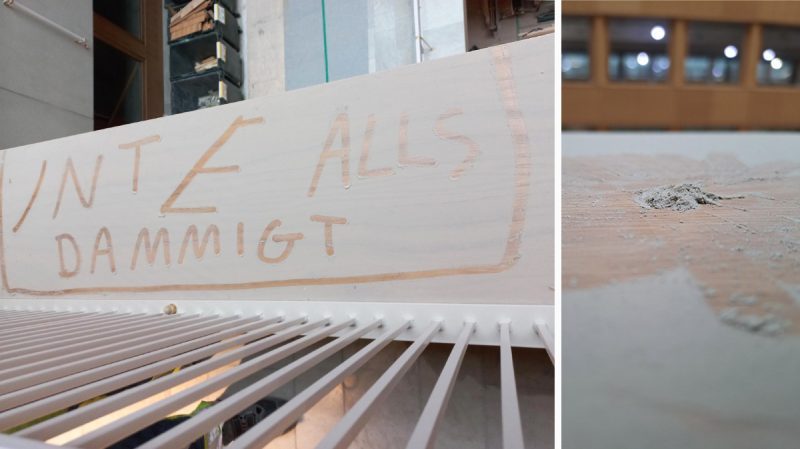 – Det har varit mer eller mindre standard att vi har byggt färdigt ett moment, som vi sedan varit tvungna att riva och göra om. Det har handlat om att väggarna haft helt fel dimensioner, väggar som sitter på fel plats. Att man stängt igen väggar där allt inte funnits med så man tvingats öppna igen och saker i den stilen. Alla snickare här har antagligen varit med om att man måste göra samma moment två gånger. Och när pengarna tog slut och stressen ökade var det säkerhetsarbetet som drabbades först, säger Unni Allansson.