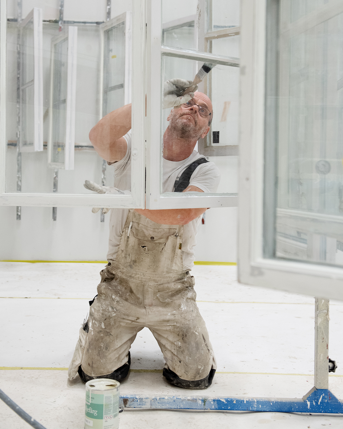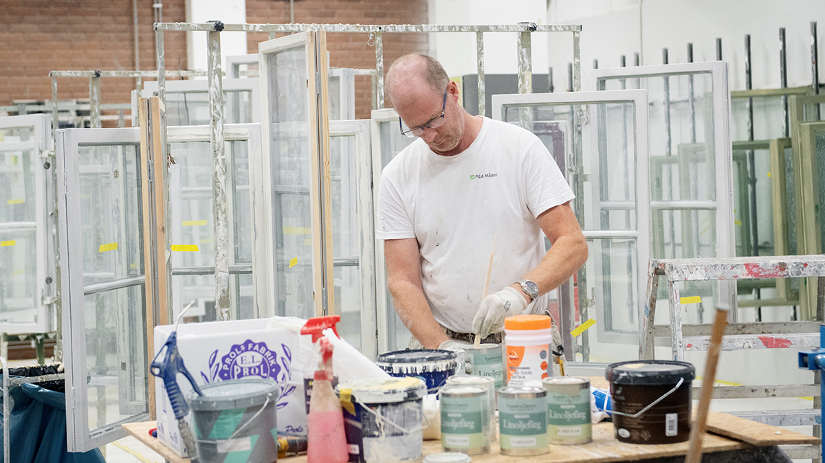 Inne i fönsterverkstaden finns just nu hundra fönster som ska slipas och målas om.