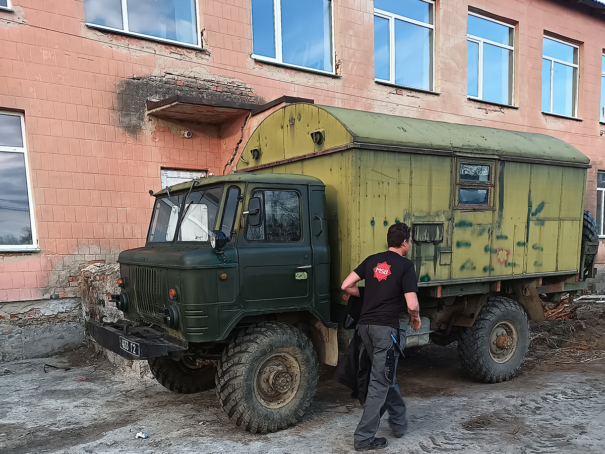 Härifrån utgår gruppens uppdrag under månaden som följer: bygga upp ett tältläger där ukrainska minröjare ska utbildas.